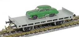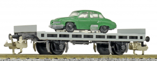 Popis   plošinový nákladní vůz s nákladem auta „Wartburg“, bez popisu