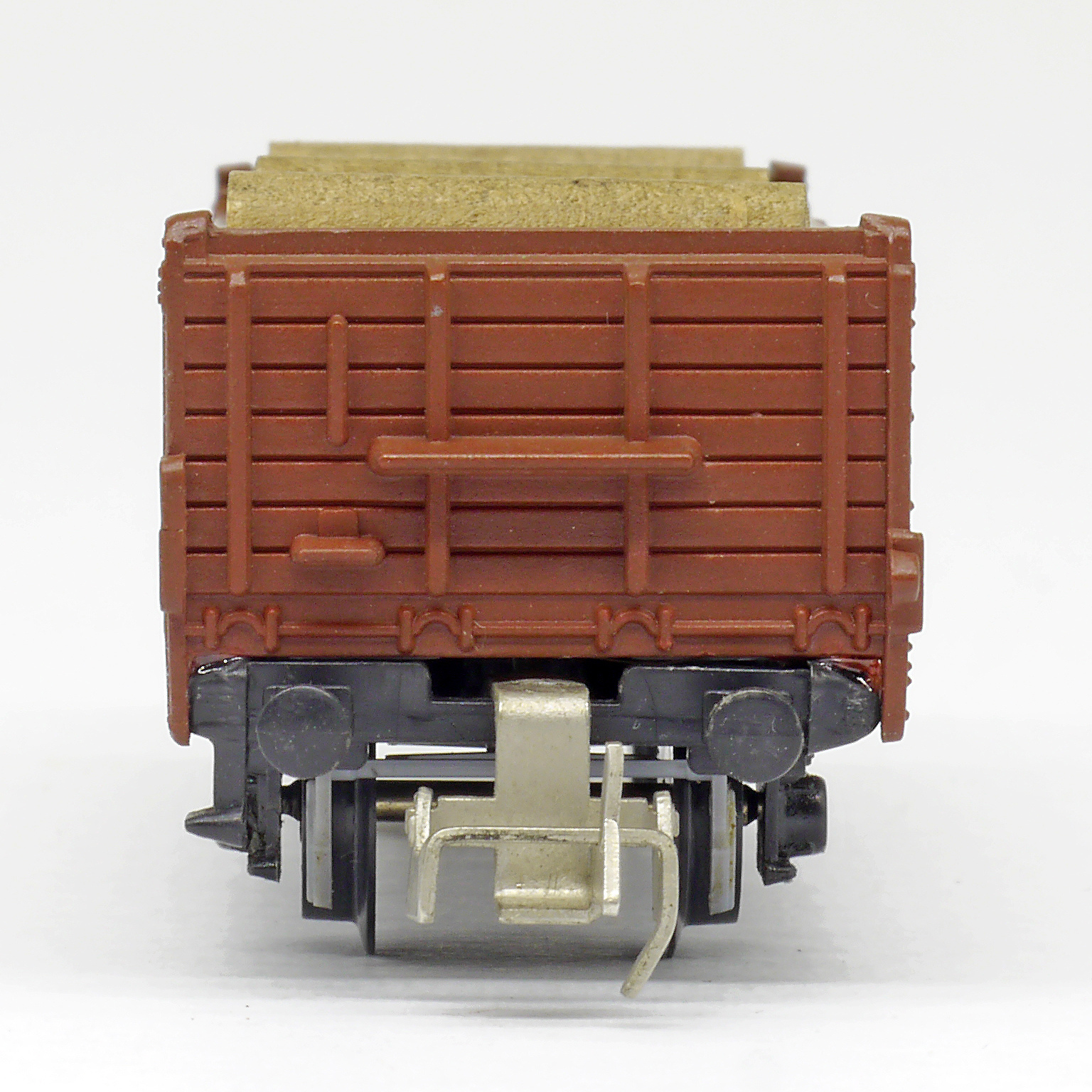 otevřený nákladní vůz červenohnědý s nákladem kulatiny