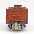 | otevřený nákladní vůz červenohnědý s brzdařskou budkou ložený uhlím |