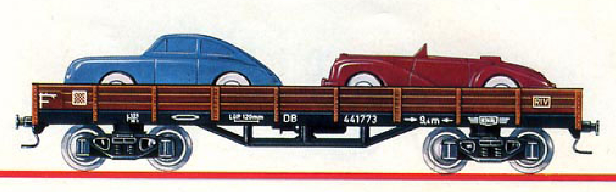 nízkostěnný nákladní vůz červenohnědý s černým rámem s nákladem dvou osobních vozů