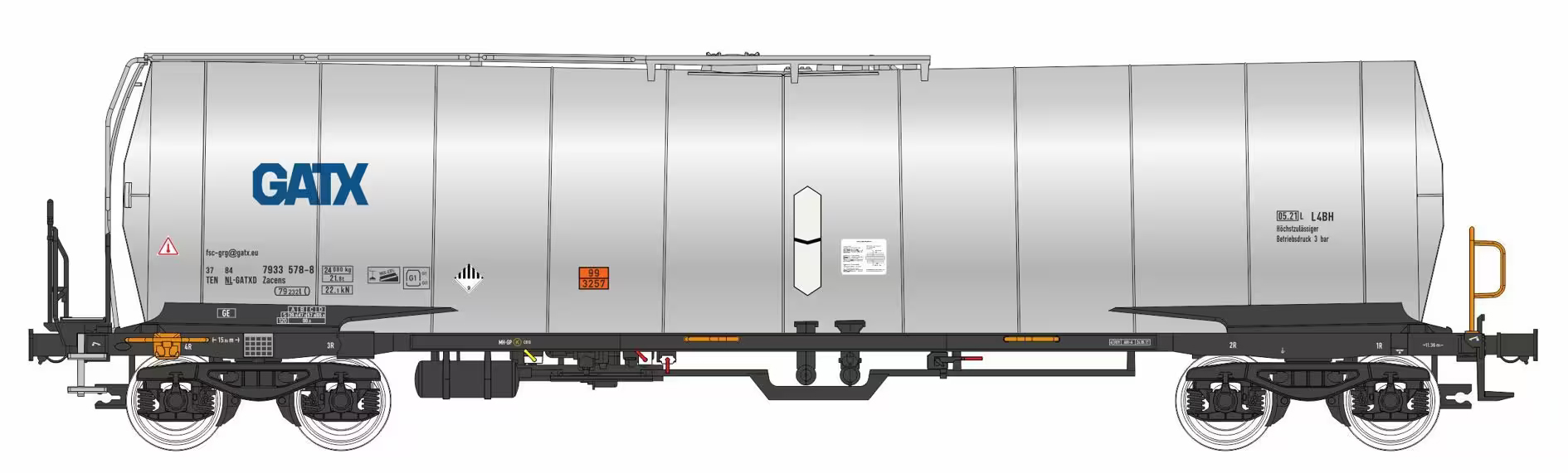 | • Zacens | - | kotlový vůz (cisterny) s kovovou nádrží, pro přepravu tekutých nebo plynných produktů |