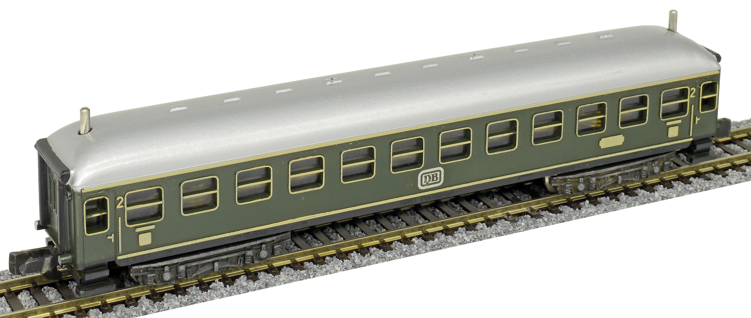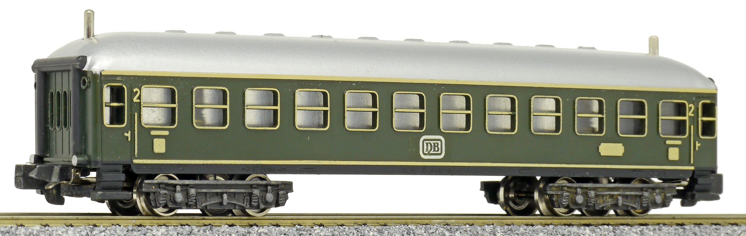 rychlíkový vůz zelený s šedou střechou 2. tř.