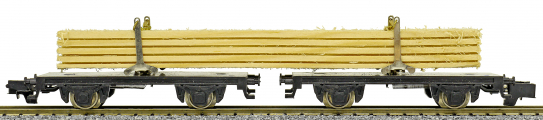 Popis   dvojice oplenových vozů s nákladem dřevěných trámů