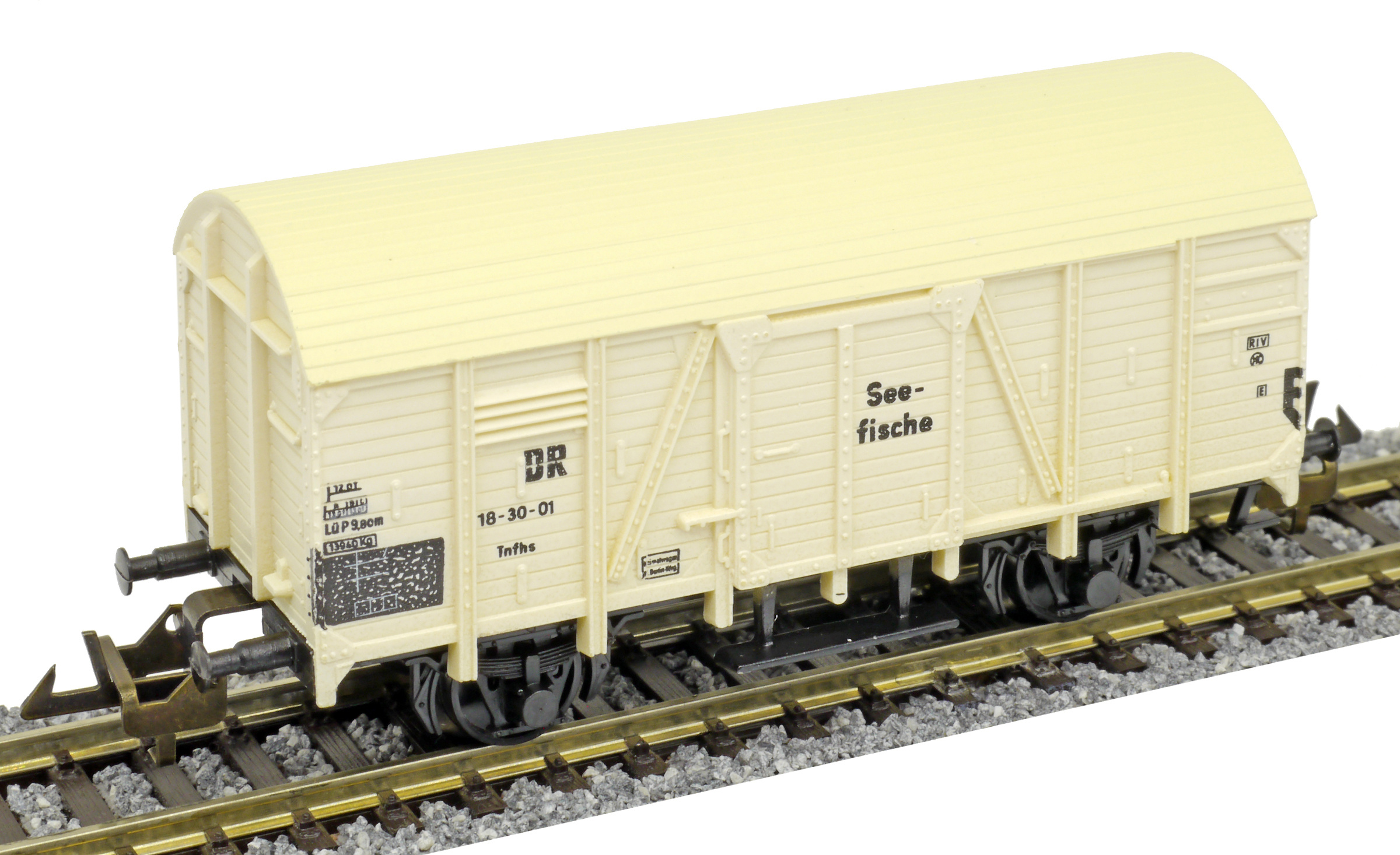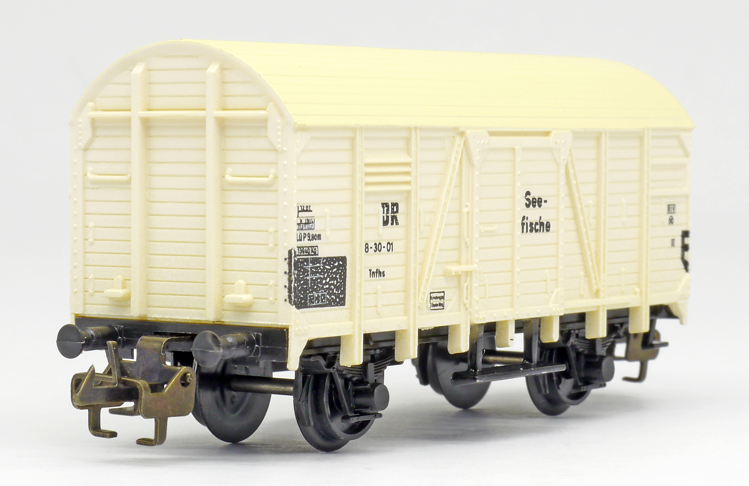 | nákladní chladící vůz bílý s šedou střechou „Seefische“ |
