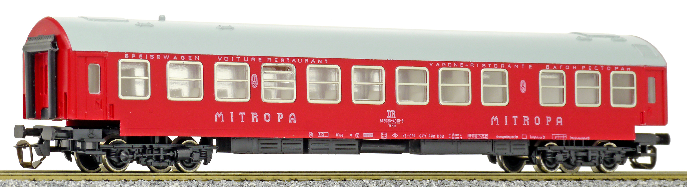 Popis   jídelní vůz červený s šedou střechou „MITROPA“
