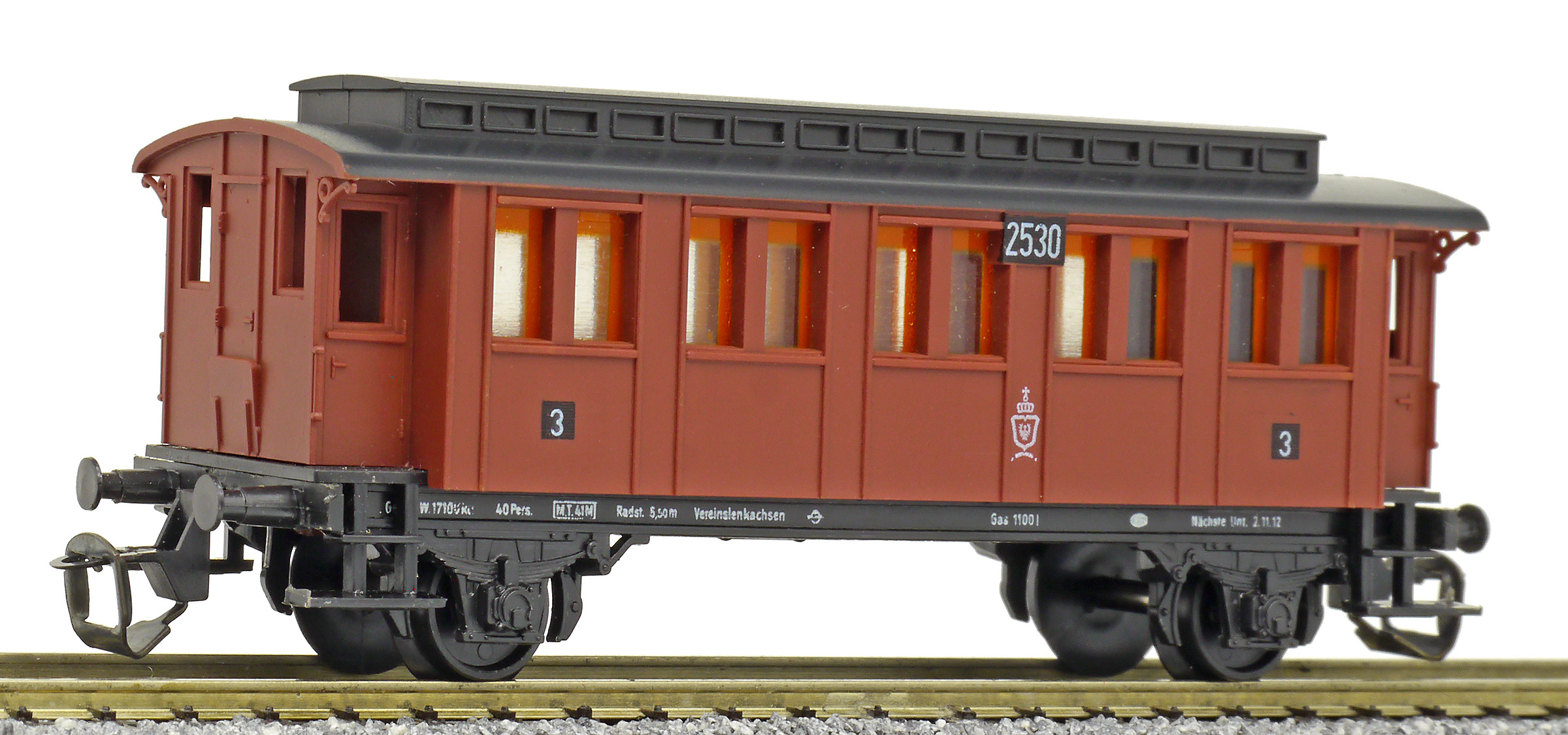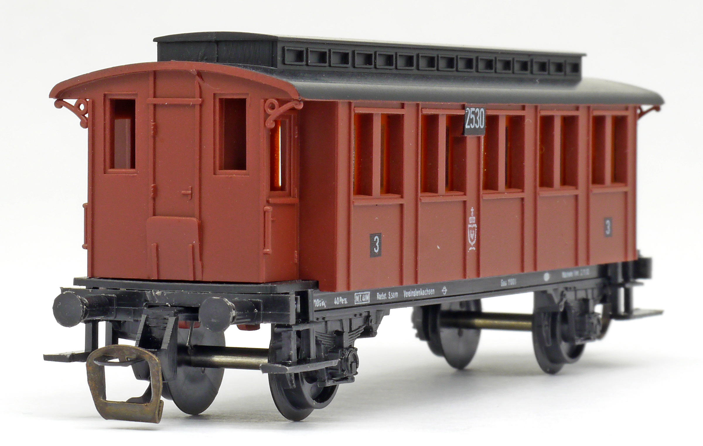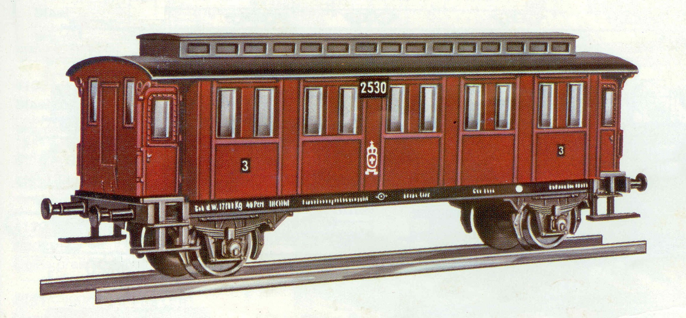 osobní vůz červený s černou střechou 2. tř.
