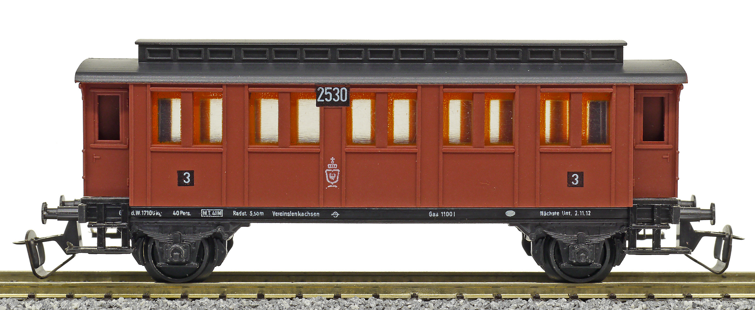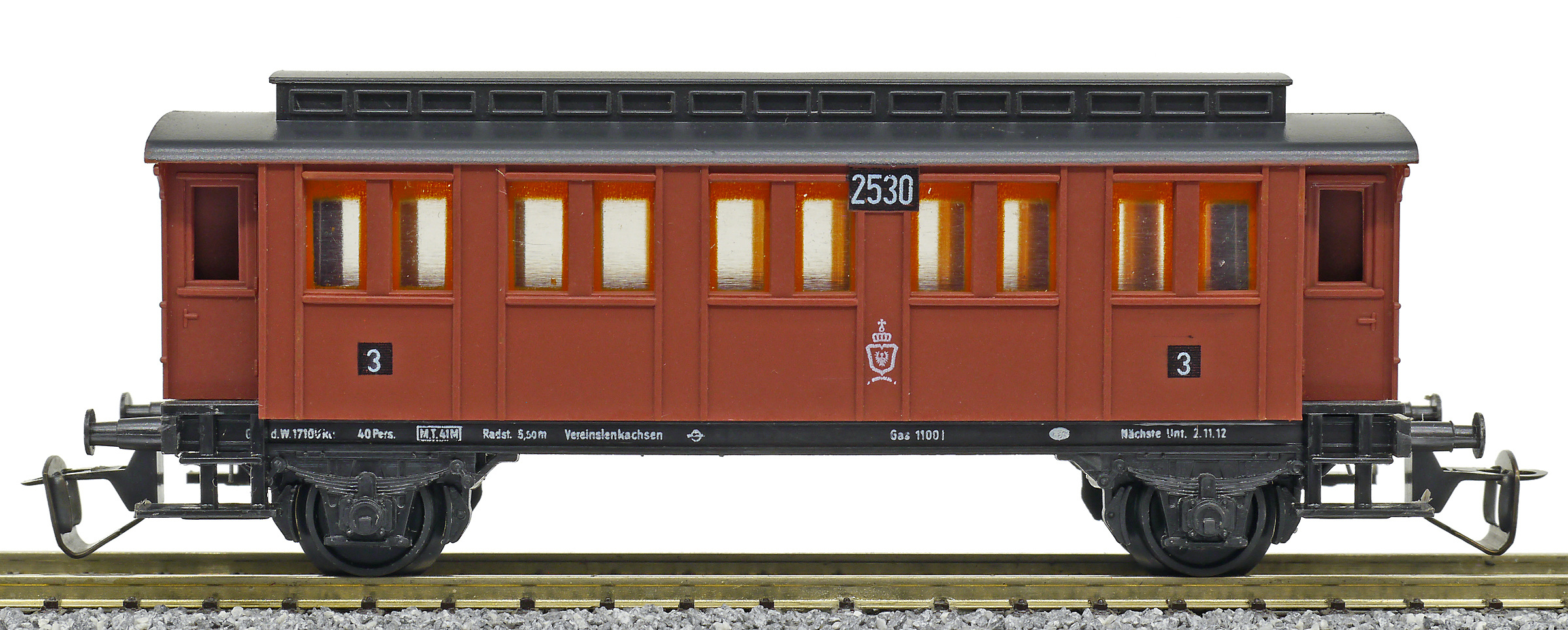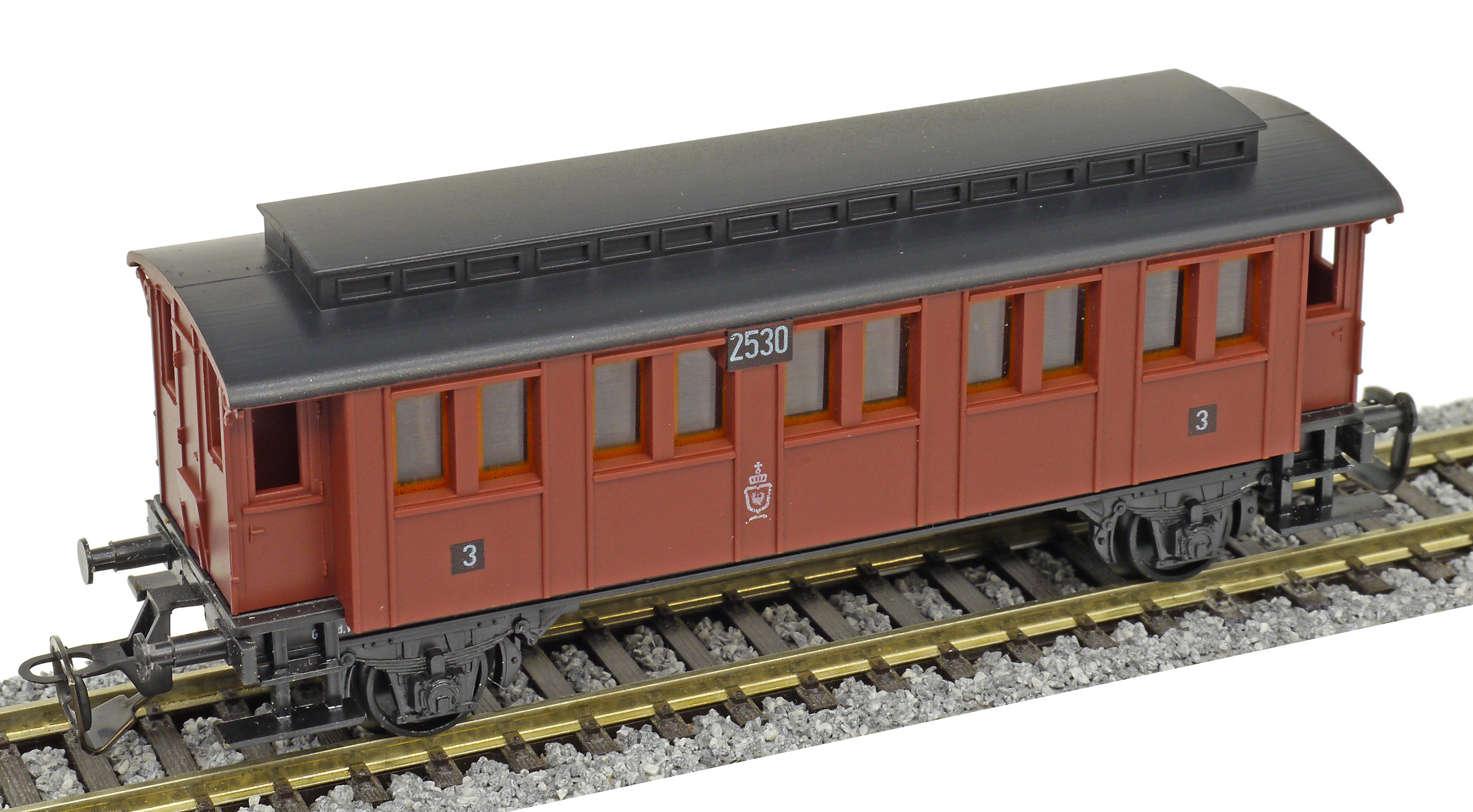 osobní vůz červený s černou střechou 2. tř.