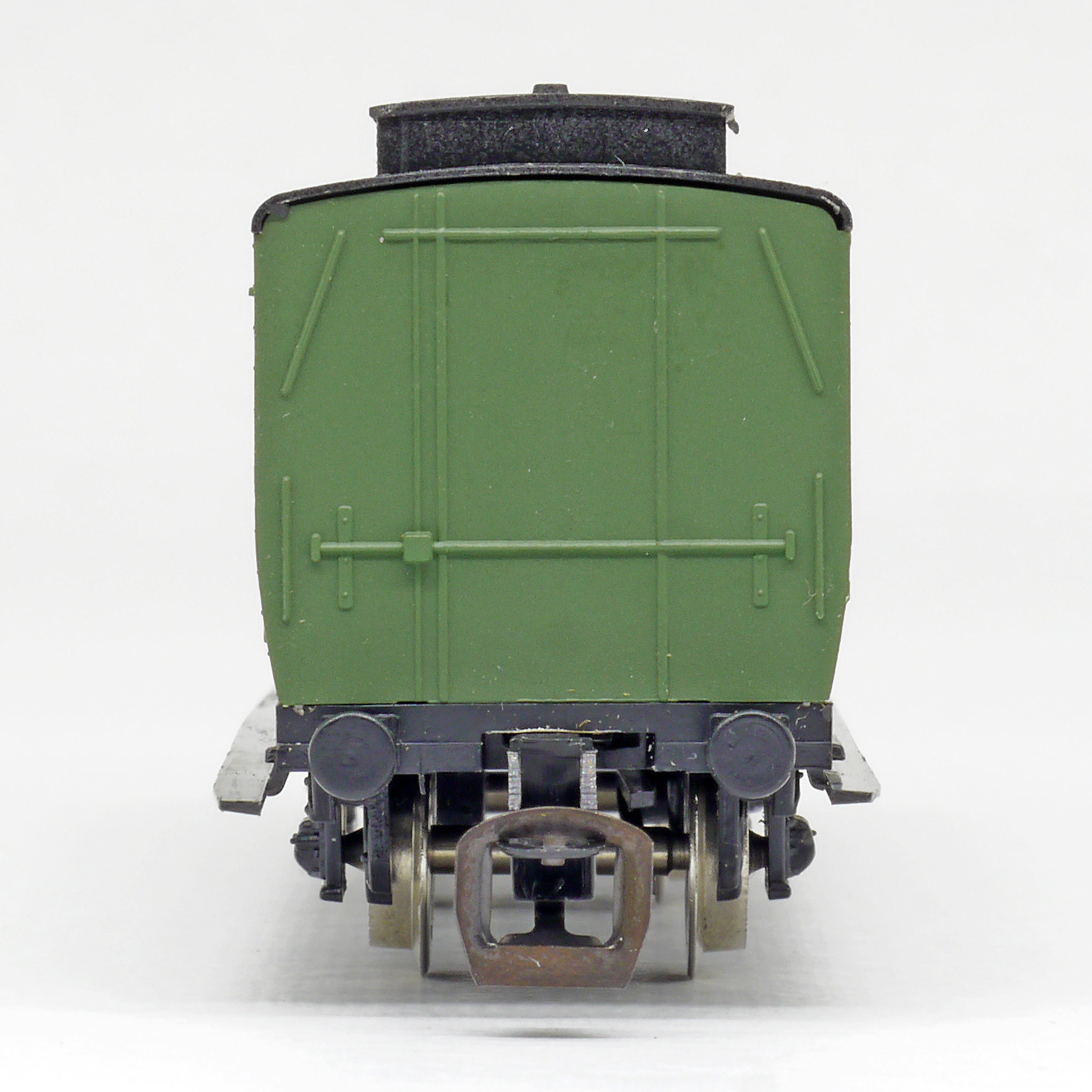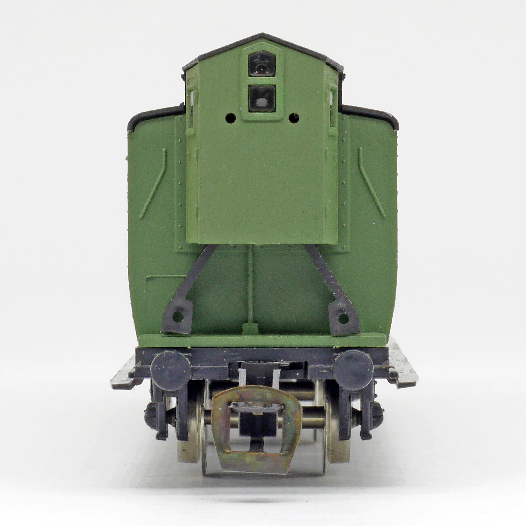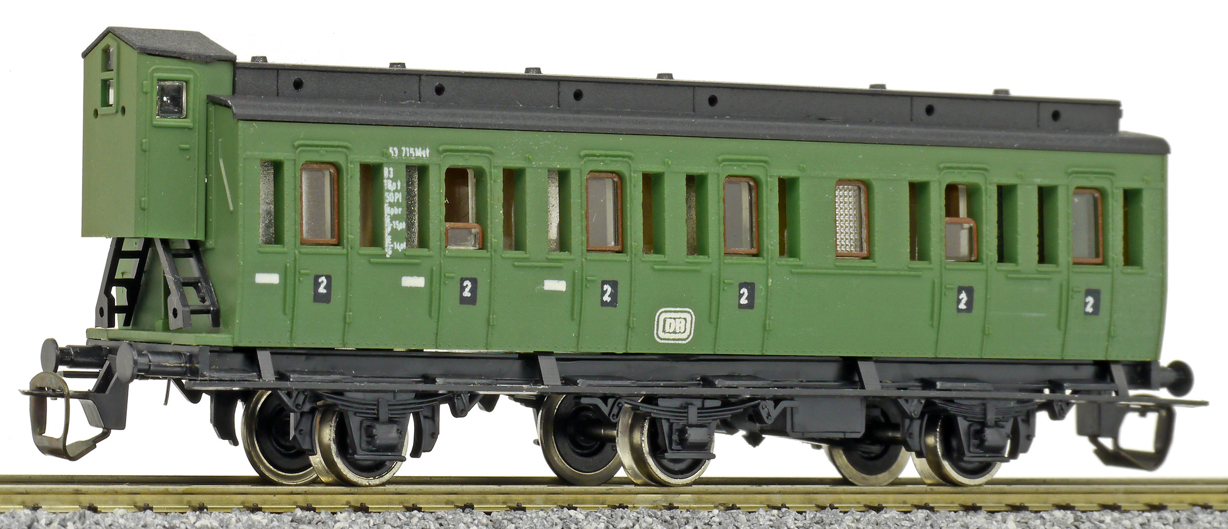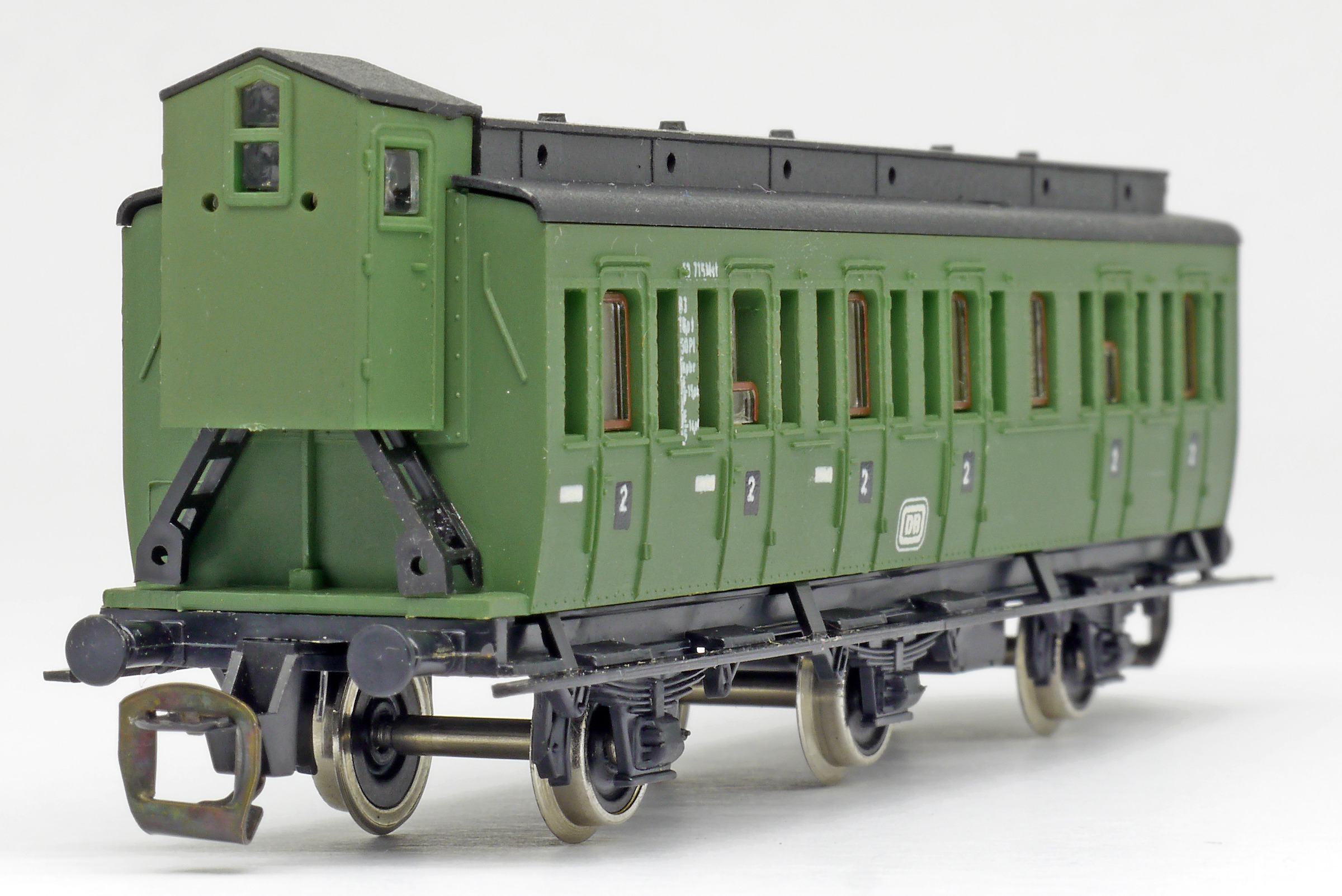 oddílový osobní vůz zelený s černou střechou s brzdařskou budkou 2. tř.