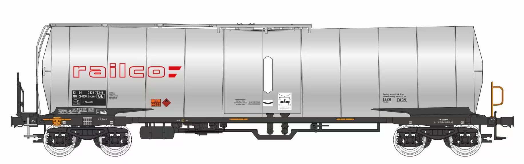 | • Zacens | - | kotlový vůz (cisterny) s kovovou nádrží, pro přepravu tekutých nebo plynných produktů |
