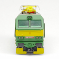 | elektrická lokomotiva zelená se žlutým výstražným pruhem |