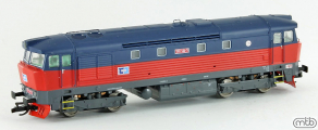 Popis   dieselová lokomotiva červená-modrá, šedý pojezd
