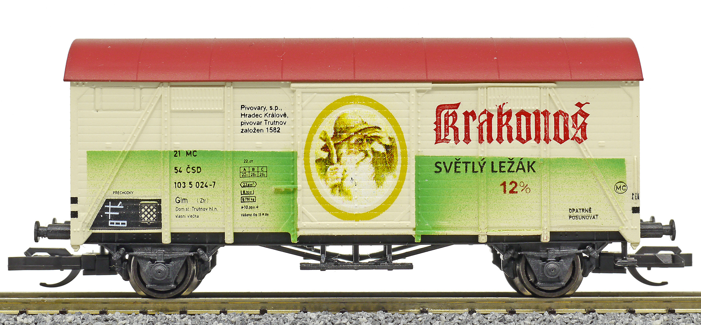 | krytý nákladní vůz žlutý s rezavou střechou „Krakonoš - světlý ležák 12” |
