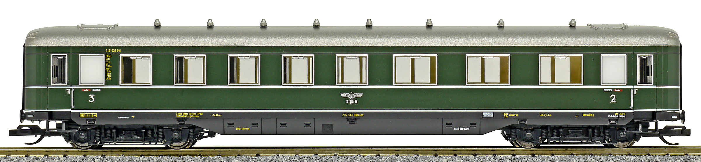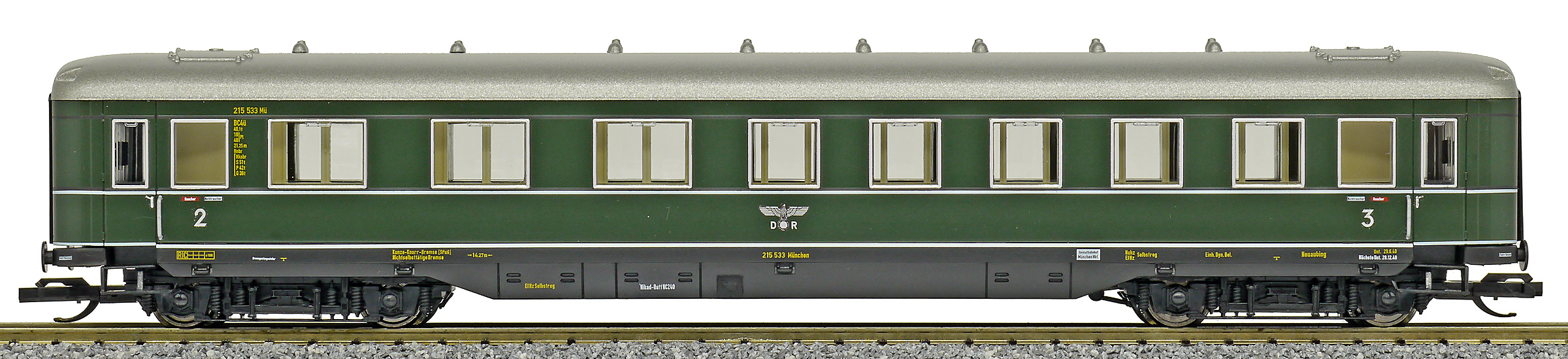 | osobní vůz zelený s šedou střechou 2./3. tř. |