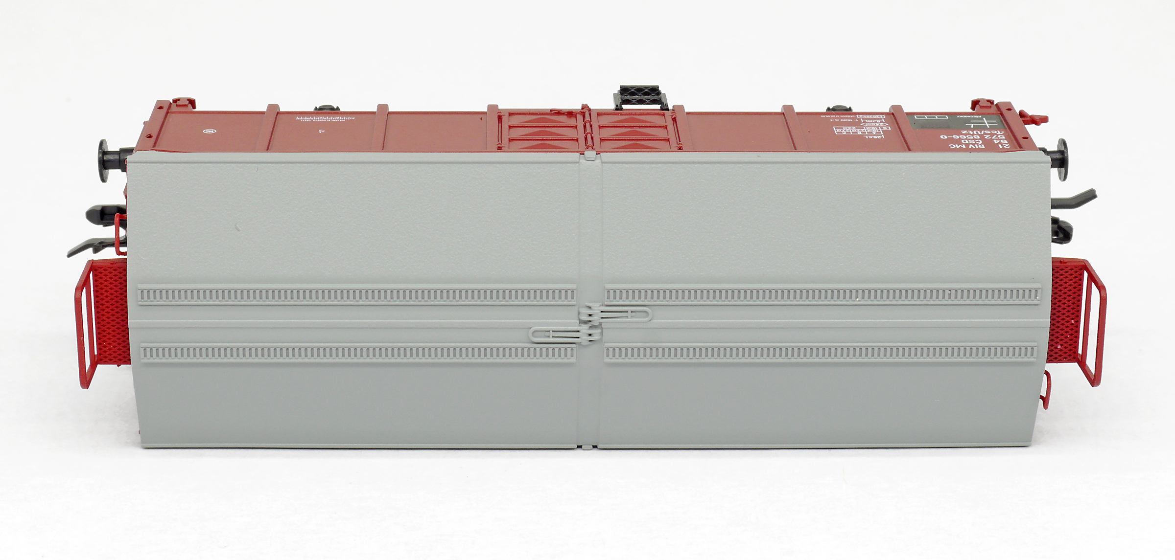 | nákladní vůz červenohnědý s šedou odsuvnou střechou |