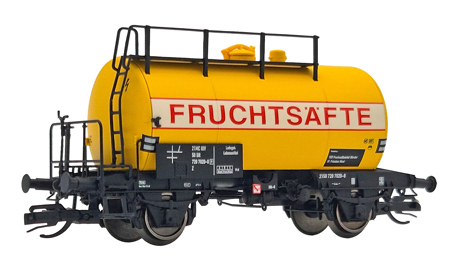 | kotlový vůz oranžový s nápisem „Fruchtsäfte“ |