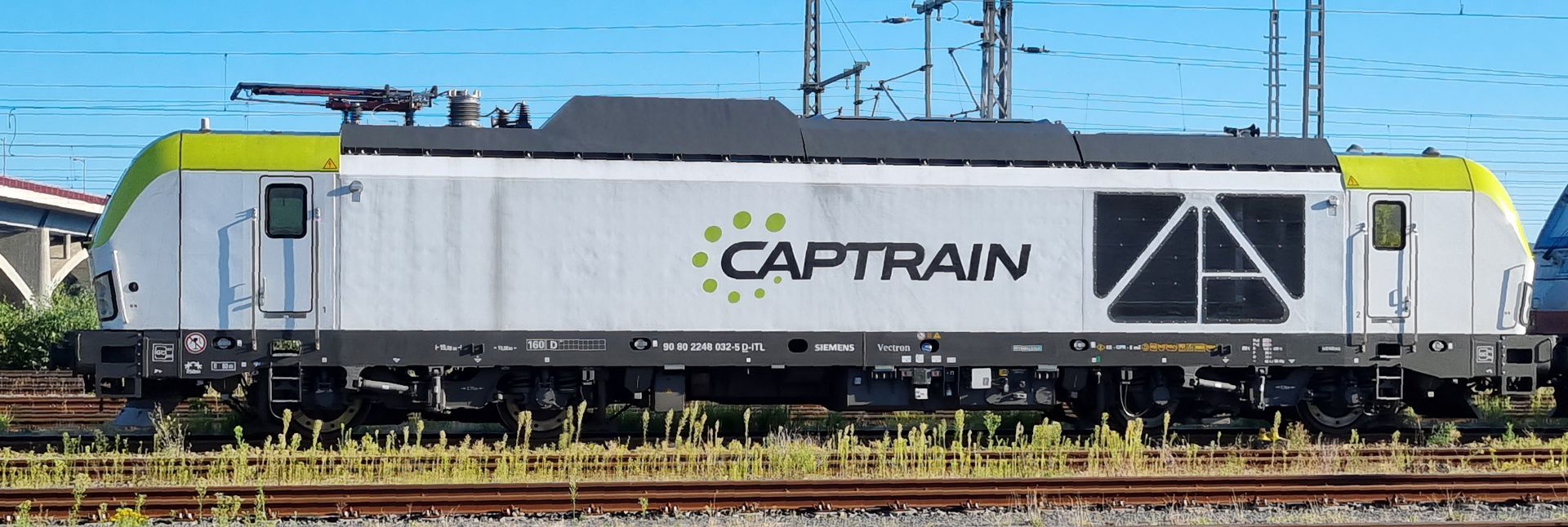 | dieselová/elektrická lokomotiva bílá-šedá s potiskem „Captrain“ |