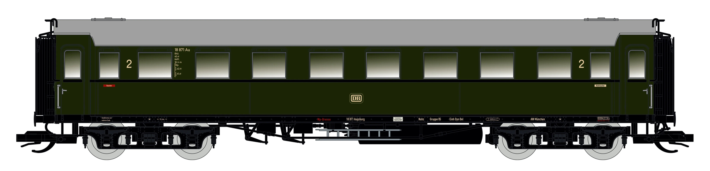 Popis   oddílový osobní vůz zelený s šedou střechou 2. tř.