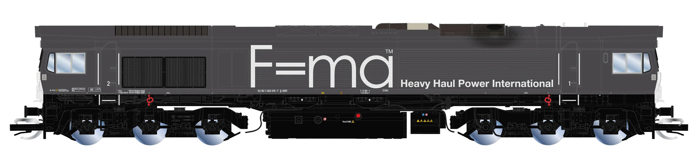 měřítko 1:120 - rozchod kolejí 12 mm osvětlení - 3 reflektory vpředu, 2 světla vzadu, přepínatelné podle směru jízdy 6 hnaných náprav instalováno osvětlení interiéru kinematika krátkého spřáhla (KKK) podle normy NEM 358 digitální rozhraní podle NEM 662 s konektorem Next18 zvukový generátor instalován lokomotivní digitální dekodér (DCC) setrvačník minimálni projížděný poloměr 310 mm 179 mm - celková délka modelu přes nárazníky