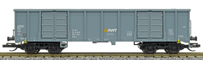 | vysokostěnný nákladní vůz šedý s logem „AWT“ |