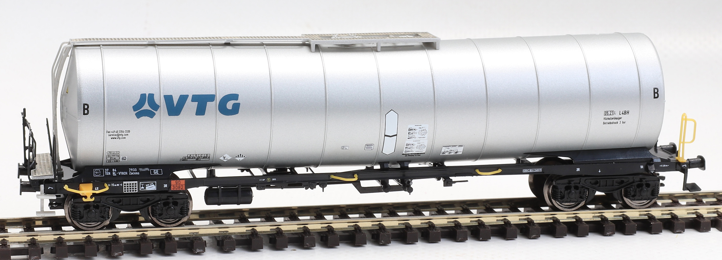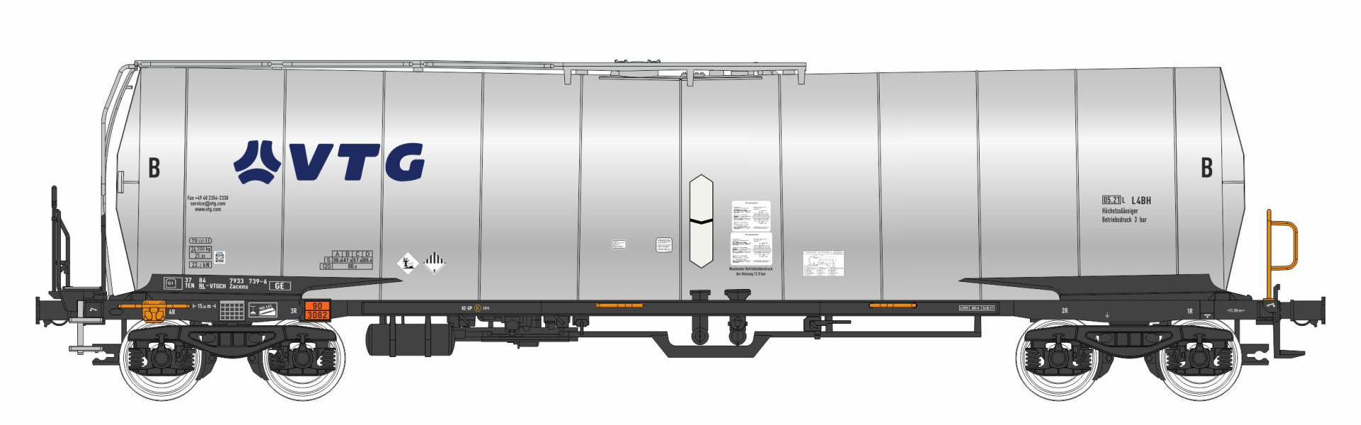 | kotlový vůz stříbrný s logem „VTG“ |