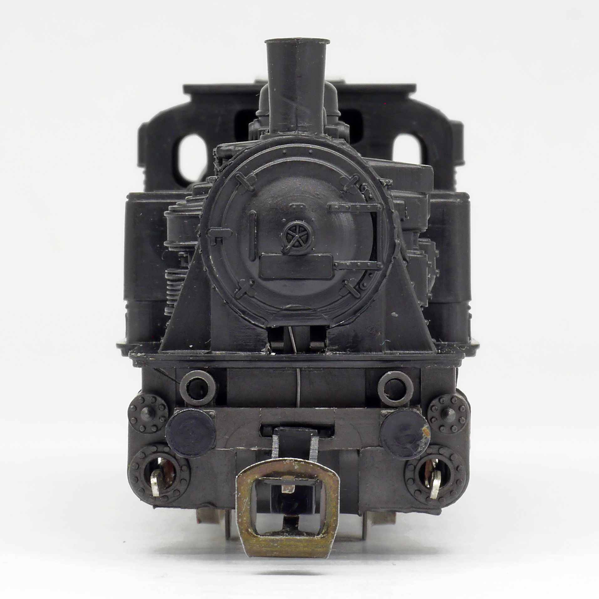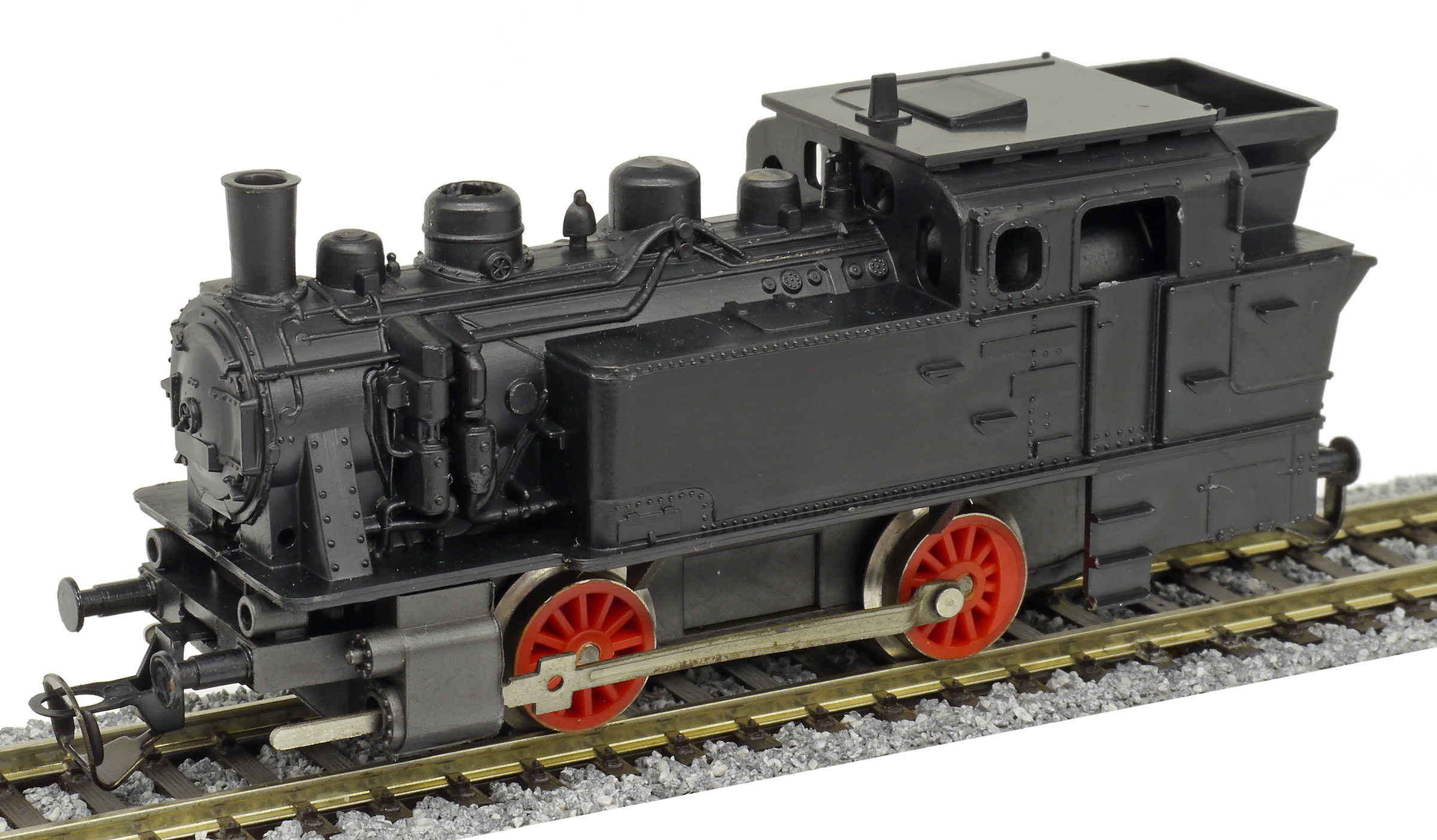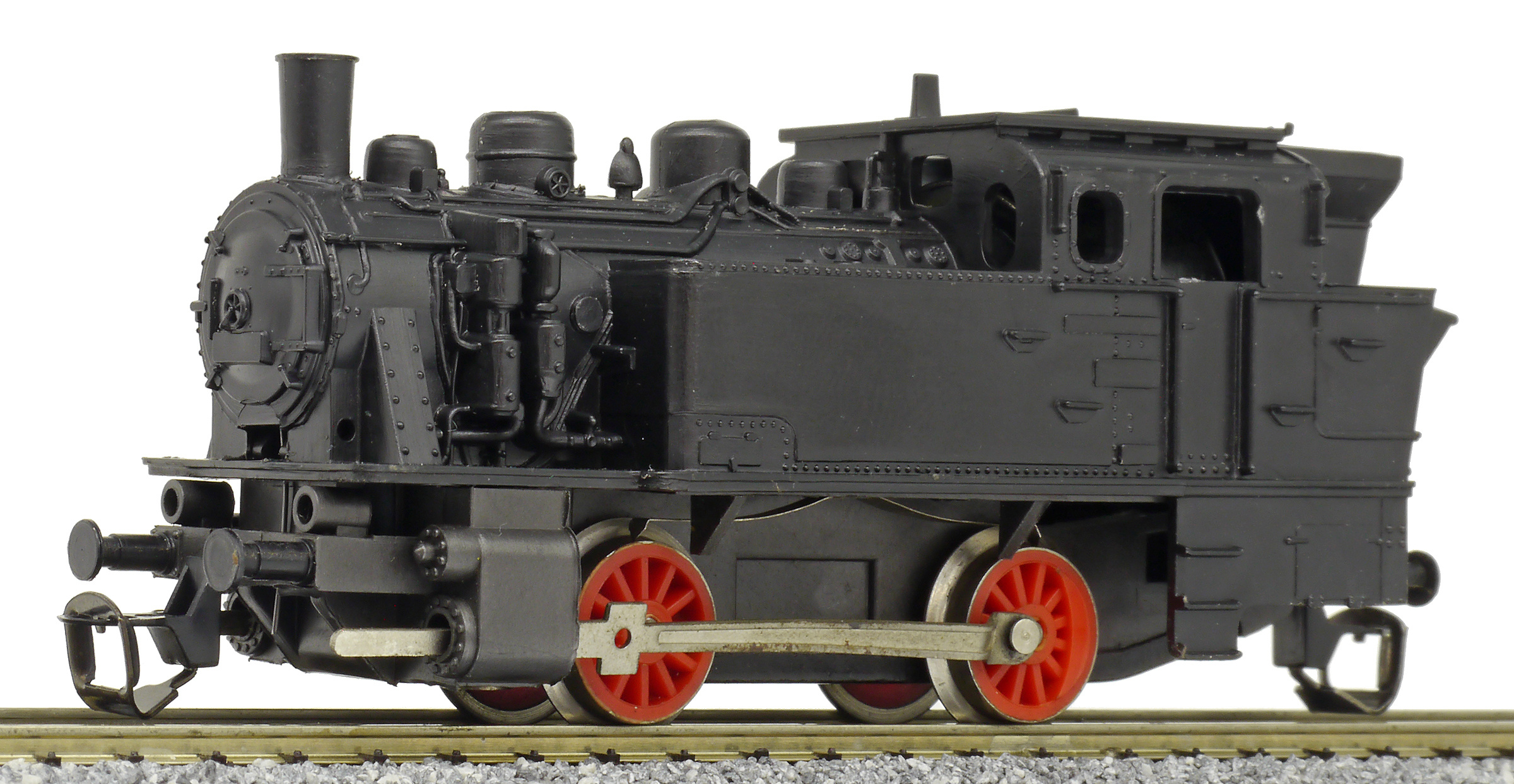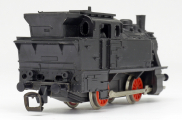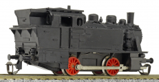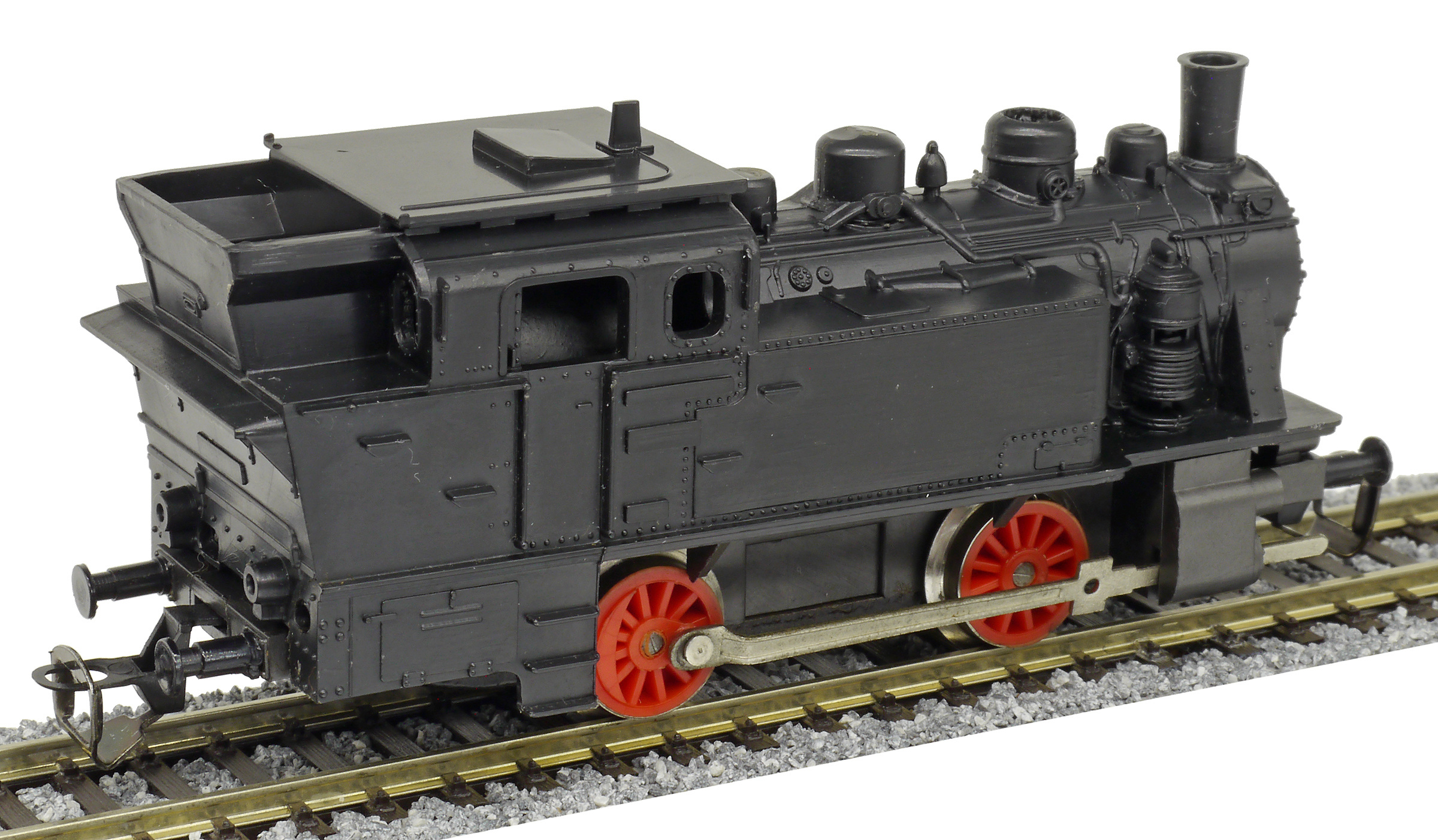 | parní lokomotiva černá v barvě plastu bez potisku, zjednodušený rozvod |