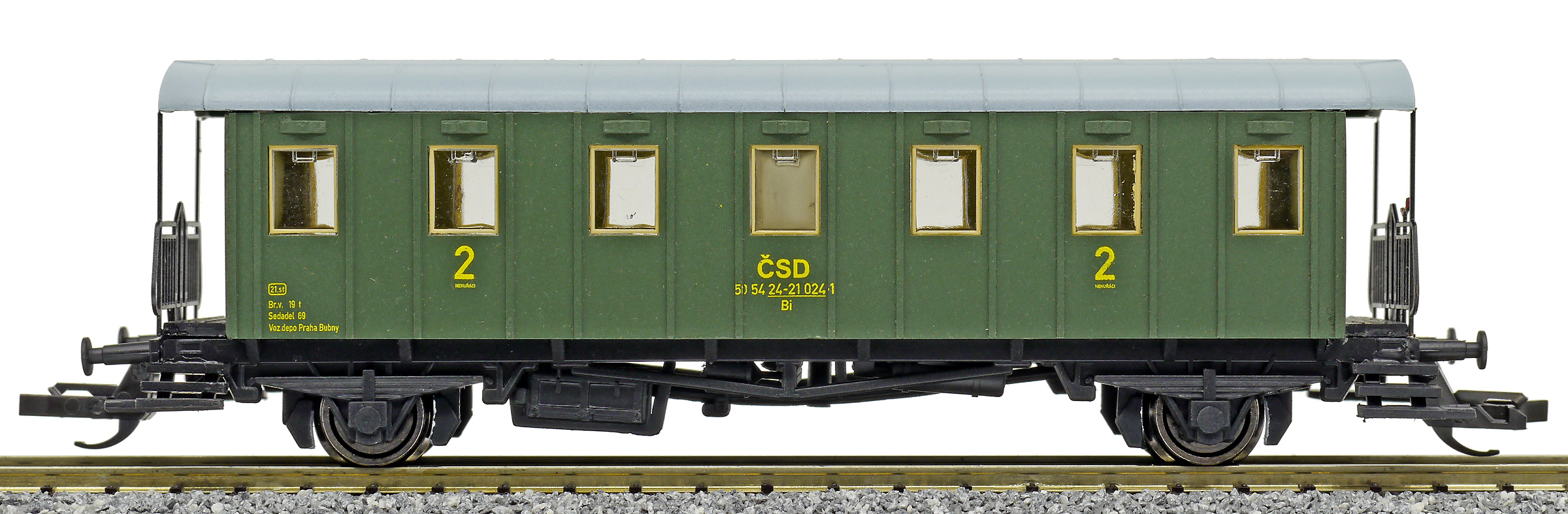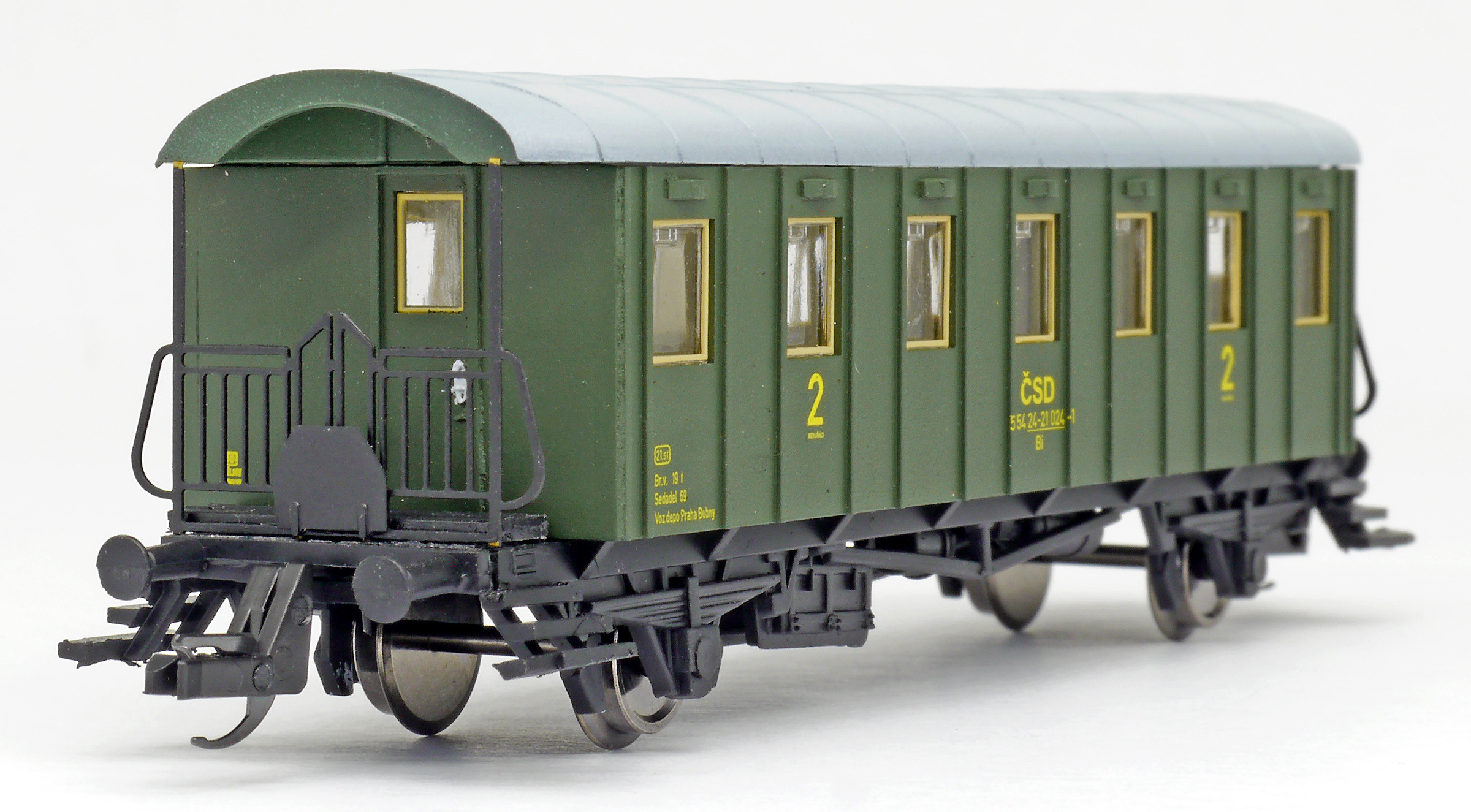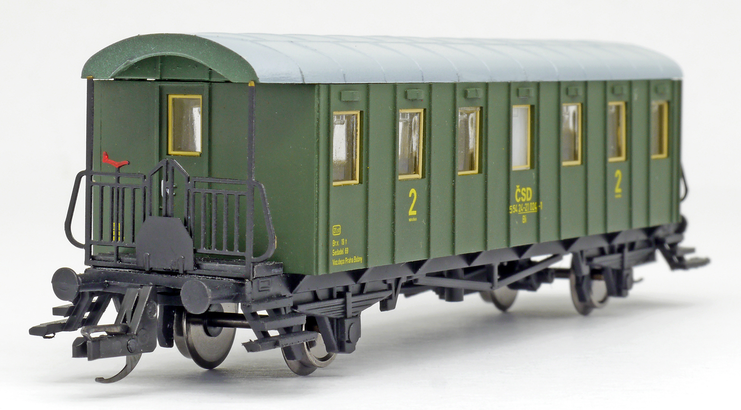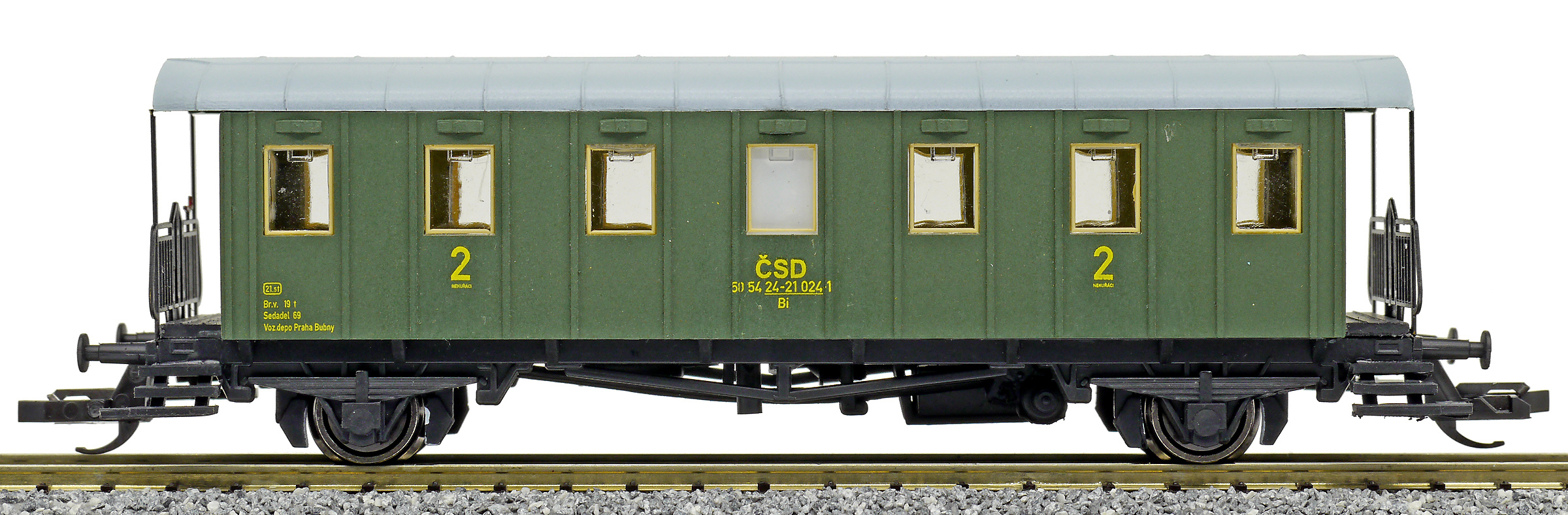 | osobní vůz zelený s šedou střechou 2. tř. |
