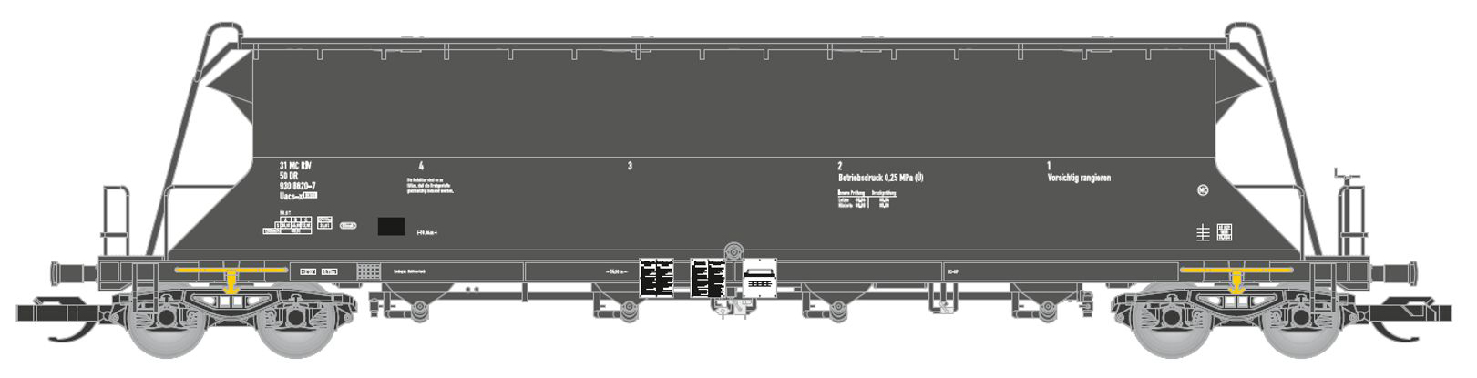 | • 31 50 930 8620-7 | → | nákladní, s podvozky, pevný rozchod, ve vlastnictví železniční správy, RIV, PPV |
