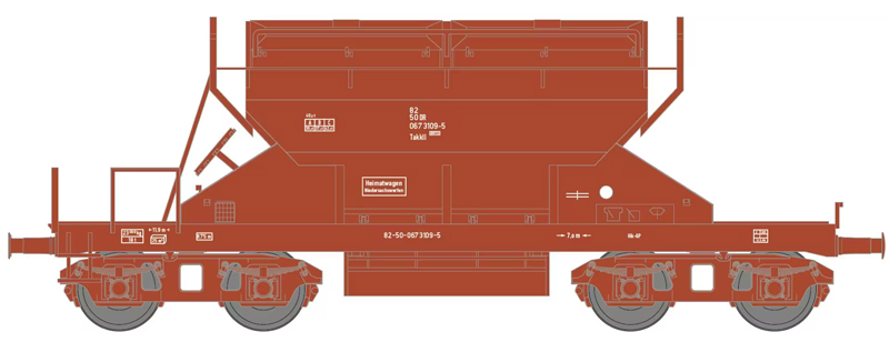 | nákladní samovýsypný vůz červenohnědý (RAL 8004) s krycími klapkami |
