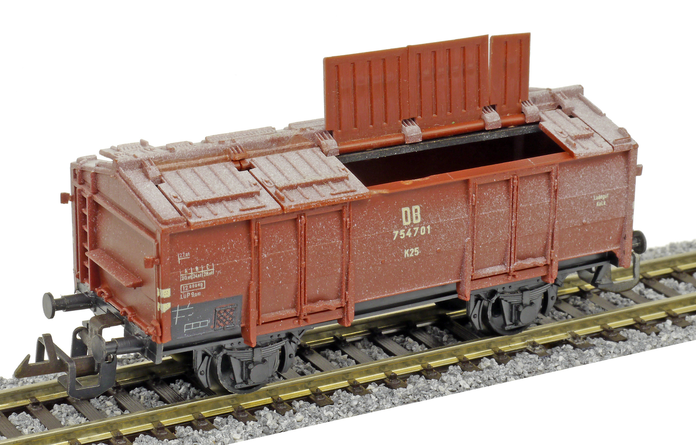 | nákladní vůz na přepravu vápna červenohnědý s odklopnými víky |