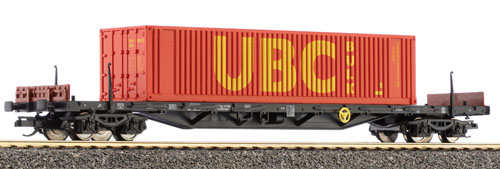 | nákladní plošinový vůz černý s jedním kontejnerem 40' „UBC“ |
