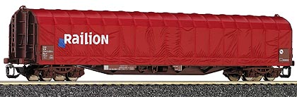 | nákladní vůz s posuvnou plachtou červenohnědý, červená plachta „Raillion“ |