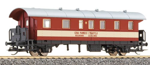osobní vůz červený s krémovým pruhěm a šedou střechou 2. tř. (ex BCi29)