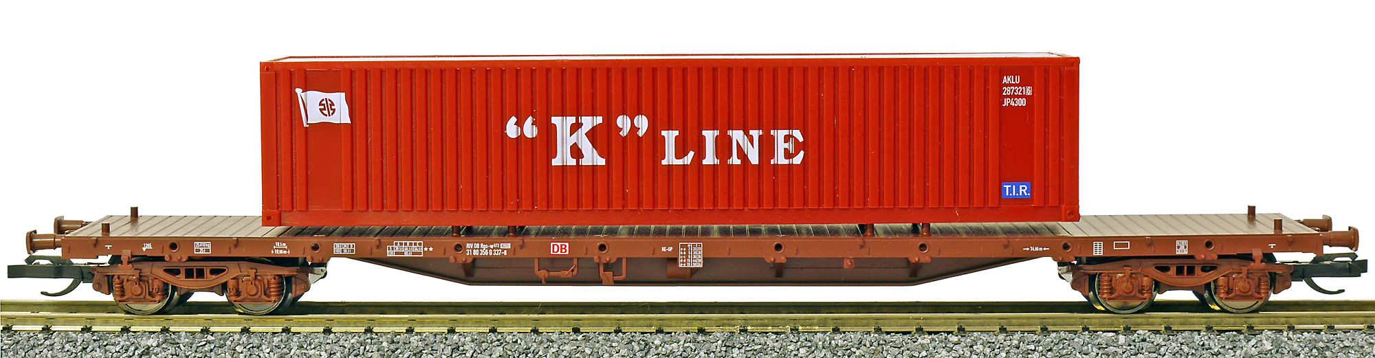 | nákladní plošinový vůz červenohnědý s kontejnerem 40' „K-LINE“ |