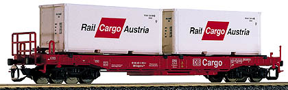 | nákladní vůz s výměnnými pryčnami a se dvěma kontejnery 20' „Rail Cargo Austria“ |