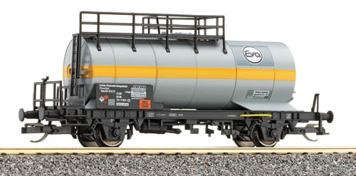 | cisternový vůz světle šedý se žlutým pásem „EVA“ |