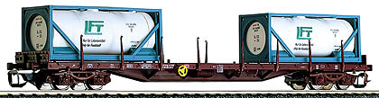 | nákladní plošinový vůz červenohnědý se dvěma cisternovými kontejnery „LFT“ |