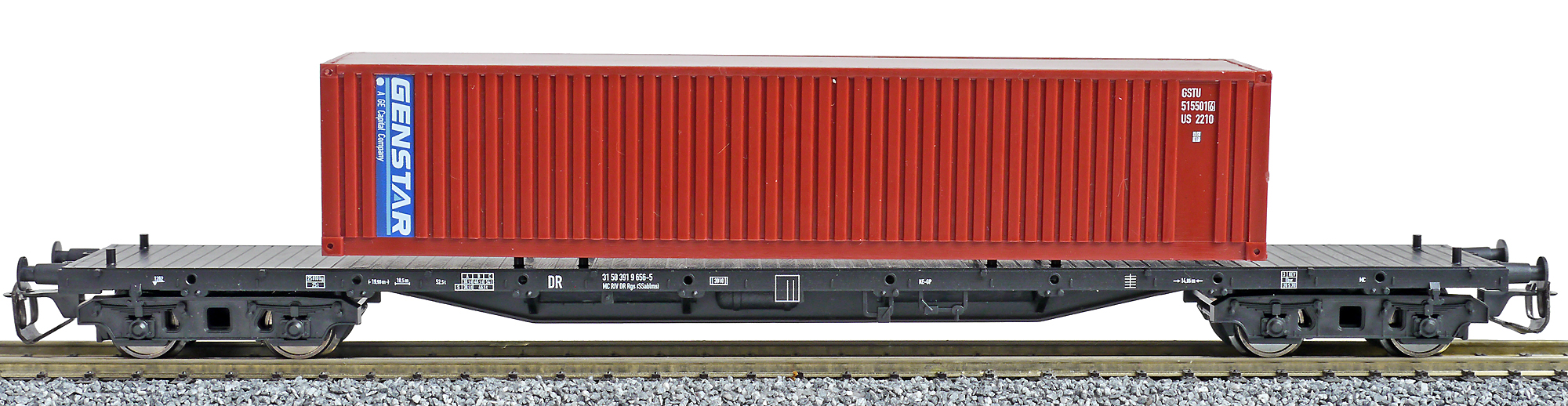 | nákladní plošinový vůz černý s kontejnerem 40' „GENSTAR“ |
