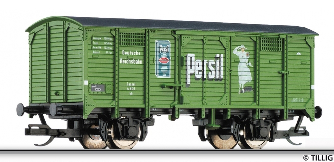 krytý nákladní vůz zelený s černou střechou „Persil“