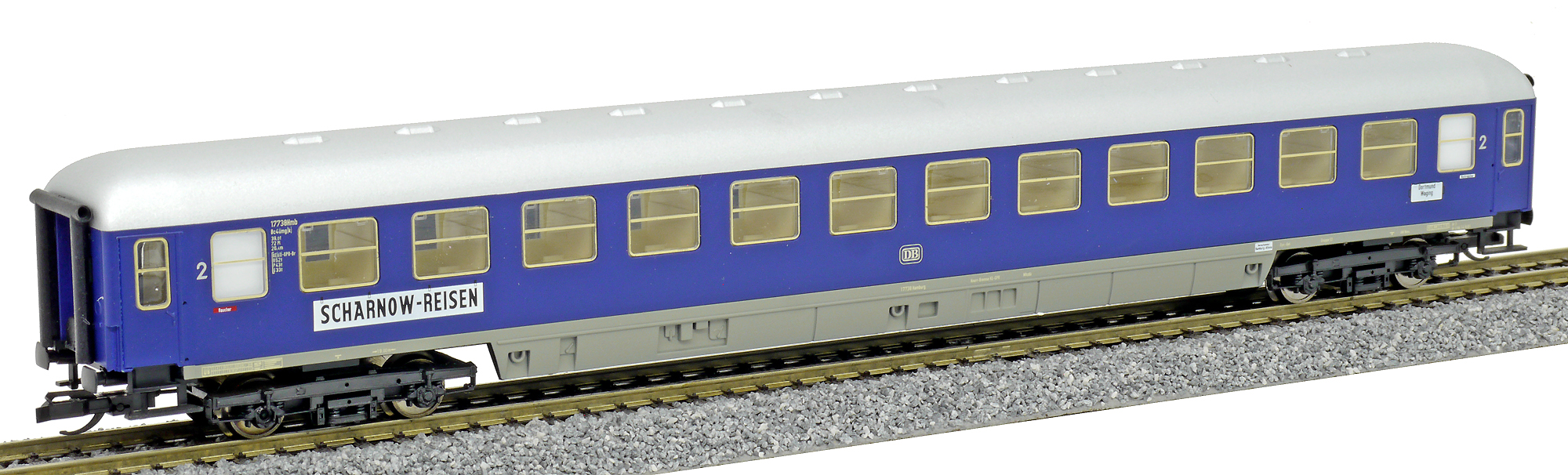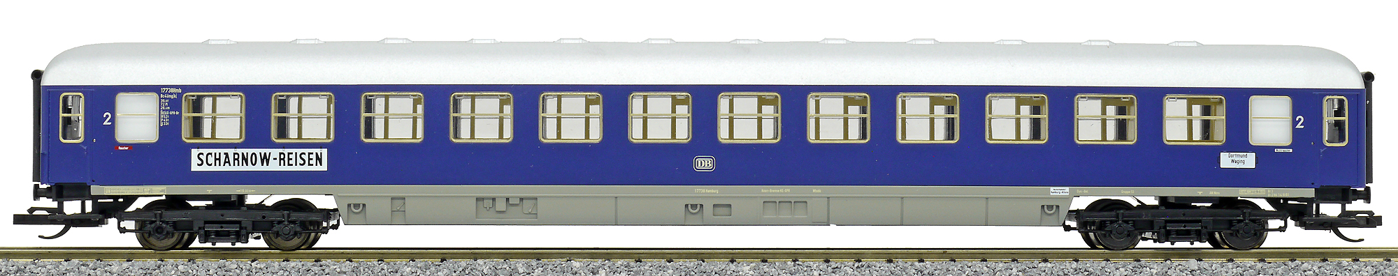 lehátkový vůz modrý s šedou střechou „ Scharnow-Reisen“