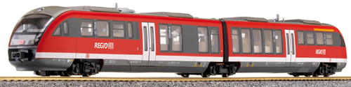 | motorová jednotka červená s šedou střechou a pojezdem, logo „DB-Regio“ |