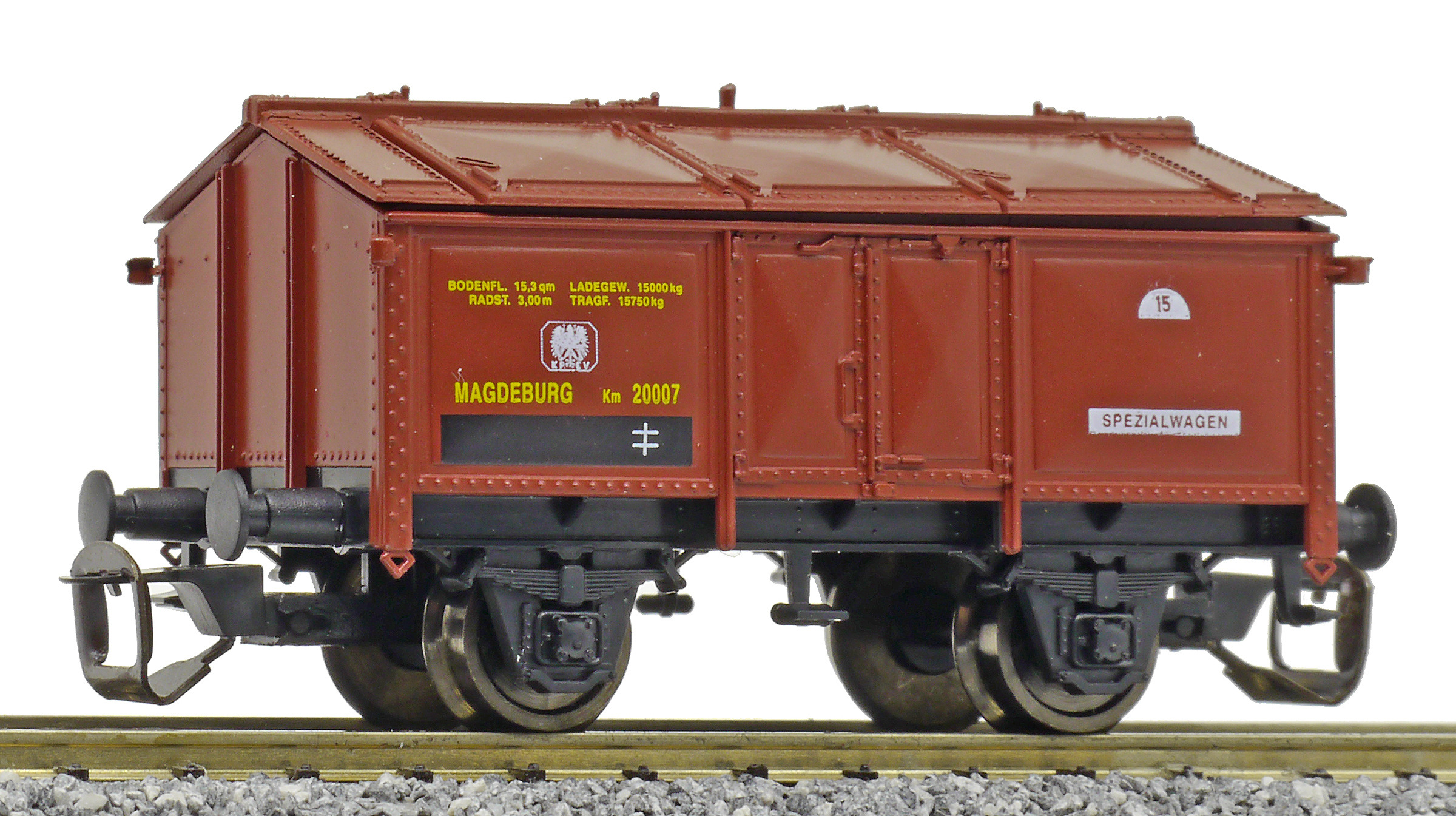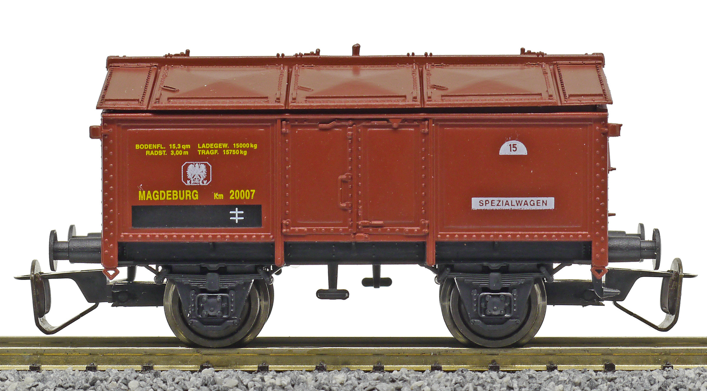 Popis   nákladní vůz červenohnědý s klapkami, černý pojezd