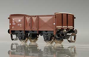 otevřený nákladní vůz červenohnědý, černý pojezd