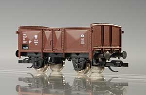 otevřený nákladní vůz červenohnědý, černý pojezd