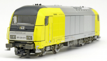 | dieselová lokomotiva v barevné kombinaci žlutá-stříbrná |