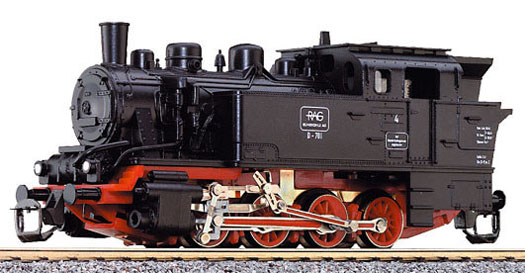 parní lokomotiva černá s červeným pojezdem „Ruhrkohle AG“