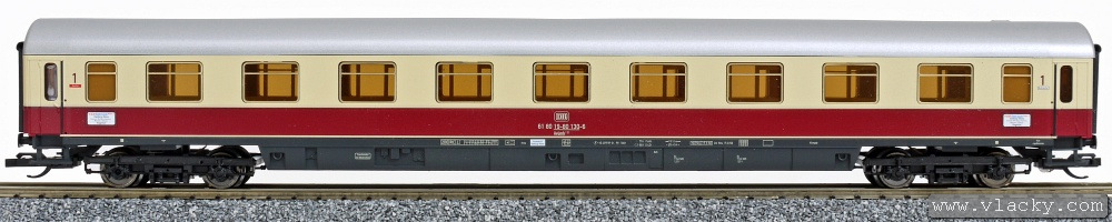 | vínově červený-krémový se stříbrnou střechou oddílový vůz 1. tř. |