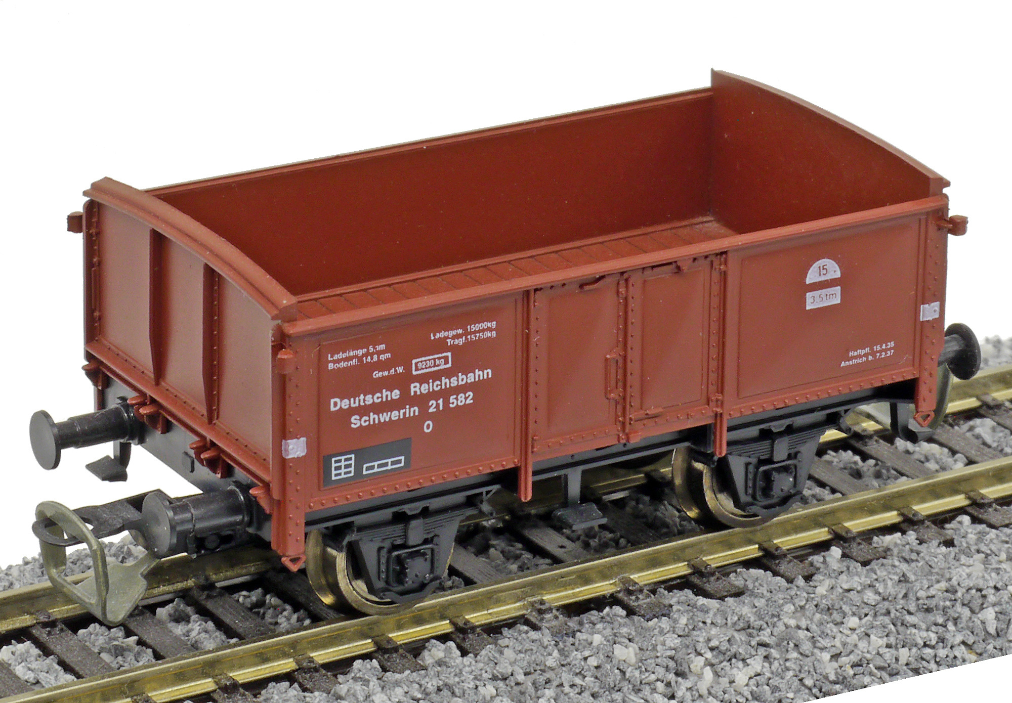 měřítko 1:120 - rozchod kolejí 12 mm kinematika krátkého spřáhla (KKK) podle normy NEM 358 55 mm - celková délka modelu přes nárazníky