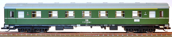 | modernizovaný osobní vůz zelený s bílou linkou pod okny 1. tř. |