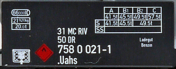 stříbrná cisterna na lehké oleje s černým příčným pásem