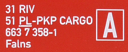 | • 31 51 553 7 358-1 | → | nákladní, s podvozky, pevný rozchod, ve vlastnictví železniční správy, RIV, PPV |